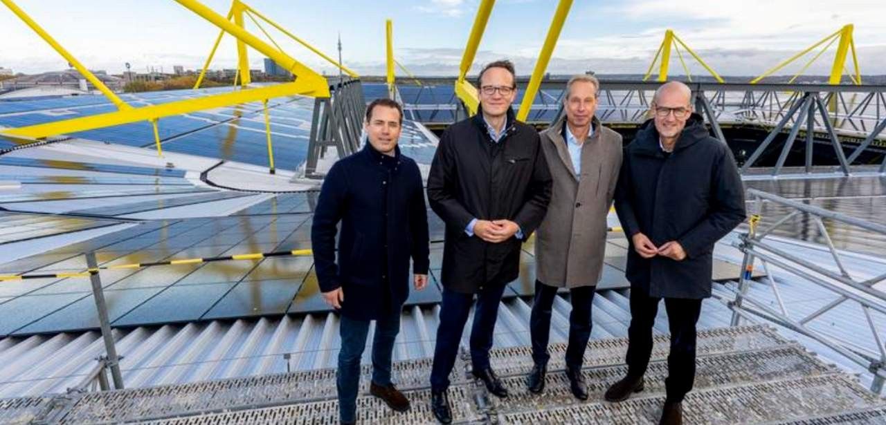 Im Zuge der sechsjährigen Partnerschaft zwischen BVB und RWE entstand auf dem SIGNAL IDUNA PARK eine Photovoltaikanlage mit 11.132 Modulen und über 5 MWp Leistung – weltweit einzigartig auf einem Stadiondach. Sie deckt künftig bis zu 50 % des Strombedarfs und reduziert den CO?-Ausstoß um etwa 1.700 Tonnen jährlich. Ergänzend wird bis 2026 ein 3,7 MWh Batteriespeicher integriert, der den Solarstrom auch nachts und bei Bewölkung bereitstellt.
